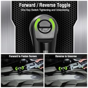 - LED embutido e interruptor de avanço/reversão: chave de catraca elétrica sem fio, luzes LED embutidas que oferecem vistas brilhantes em um local escuro. A parte de trás da cabeça embutida é composta por interruptores para frente e para trás. Você pode mudar a direção com um clique de acordo com os requisitos de instalação ou remoção de parafusos