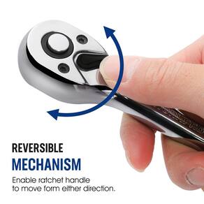 WORKPRO A chave catraca de 3/20.3 cm é feita de liga de cromo com uma cabeça CR-MO para maior durabilidade. O acabamento cromado brilhante permite uma limpeza fácil quando o trabalho é feito e é resistente à corrosão para uso prolongado. - Alta qualidade: WORKPRO chave catraca de 3/20.3 cm é feita de liga de cromo com uma cabeça CR-MO para maior durabilidade. O acabamento cromado brilhante permite uma limpeza fácil quando o trabalho é feito e é resistente à corrosão para uso a longo prazo - Design de liberação rápida: o recurso de liberação rápida da chave catraca facilita a troca entre soquetes. É facilmente removido pressionando o botão de liberação na chave inglesa, permitindo até mesmo a substituição dos soquetes com uma mão - Trava de catraca reversível: o interruptor de catraca reversível se move suavemente e facilmente. Basta virar o interruptor de acionamento tendencioso na parte traseira da cabeça da catraca para mudar facilmente de direção, apertando ou afrouxando efetivamente o parafuso sem remover o soquete do fixador - Design ergonômico: alças antiderrapantes com um design ergonômico que ajuda a reduzir a fadiga e o deslizamento das mãos. Mesmo em baixas temperaturas, a alça composta de alto impacto permanece confortável - CENÁRIOS DE APLICAÇÃO: o mecanismo de catraca reversível de 72 dentes precisa apenas de um arco de giro de cinco graus para operar enquanto mantém o torque máximo. E a unidade de 0,9 cm pode ser usada para reparos de automóveis, motocicletas e veículos elétricos