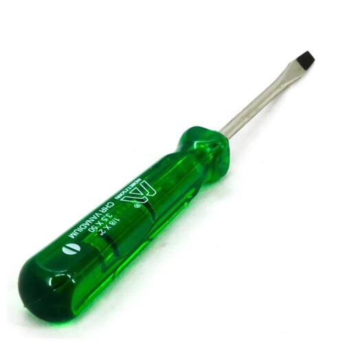 Chave de Fenda 1/8x2" Master MoretzsohnA chave de fenda é uma ferramenta popular e bastante conhecida. Utilizada para apertar e desapertar parafusos que possuem uma fenda na cabeça, a ferramenta é útil para trabalhos em oficinas, mecânicas, indústrias, e serviços domésticos. A chave de fenda da marca Moretzsohn é fabricada em aço cromo vanádio e possui seu cabo em PVC resistente a altos níveis de torque.Medida: 1/8x2"Referencia: 11002Quantidade: 1 unidades*Imagem Ilustrativa*Marca: MoretzsohnCodigo: 41506