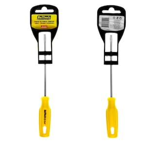 Produzida em aço cromo vanádio, proporcionando maior resistência e durabilidade. Possui acabamento niquelado que confere maior resistência contra oxidação/corrosão. Conta com ponta magnetizada que facilita tanto a colocação quanto a retirada de parafusos em locais de difícil acesso. Cabo anatômico em polipropileno que garante maior conforto ao operador. Indicação: Indicada para fixar e soltar parafusos com fenda simples.