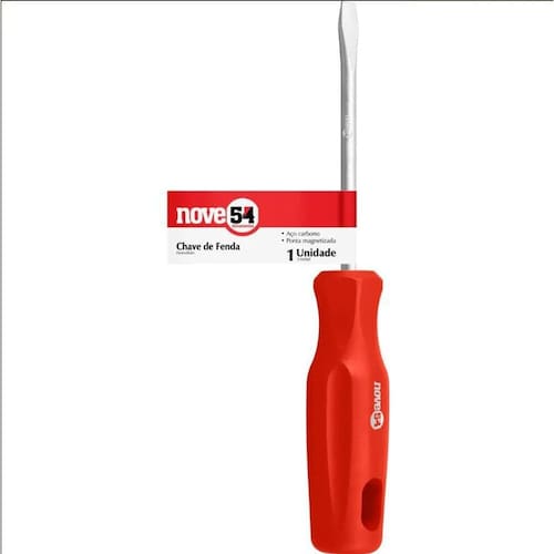 Conteúdo da embalagem 1 Chave de fenda Aplicações e dicas de uso Indicada para fixar e soltar parafusos com fenda simples Destaques e diferenciais Haste com acabamento niquelado que maior proteço contra oxidaço/corrosão. Possui ponta magnetizada que facilita tanto a colocaço quanto a retirada de parafusos em locais de difícil acesso. Conta ainda com cabo anatômico que proporciona maior conforto ao operador. DETALHES TÉCNICOS Largura da ponta da chave: 5/16 - 7,9 mm Comprimento da haste da chave: 6 - 152 mm Material da haste da chave: Aço carbono Acabamento da haste da chave: Niquelado Material do cabo da chave: Polipropileno Cor do cabo da chave: Vermelho Ean: 7893946383299