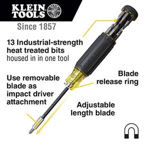 A chave de fenda de vários bits inclui 13 pontas de chave de fenda diferentes e uma chave de porca de 1/4 de polegada