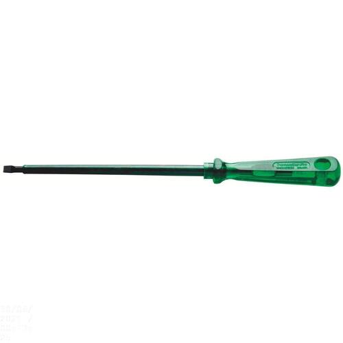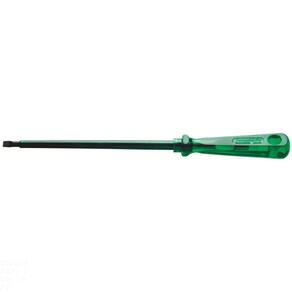 Seja em manutenções industriais ou automotivas, apertar ou afrouxar parafusos se torna mais fácil com a ajuda das Chaves Easygrip da Tramontina PRO. Seu cabo com formato sextavado proporciona maior conforto e agilidade na utilização. Estão disponíveis com ponta chata, cruzada, trafix, trafix PZ e canhão nos modelos tradicional, toco e com isolação. Escolha o tamanho ideal para o seu trabalho e mãos à obra. Orientações Haste em aço cromo vanádio temperada. Ponta fosfatizada.Cabo em PVC verde transparente.Isolação de 1000 V c. a.Produto em conformidade com a NBR9699 e NR10. DIN ISO 2380.As hastes das chaves de fenda são testadas em máquina de ensaio específica, para verificar o perfeito balanço entre resistência mecânica e dureza.Os dimensionais das pontas são verificados com gabaritos-padrão calibrados e certificados, e a qualidade do fosfato é inspecionada ao microscópio.As chaves de fenda isoladas são amplamente testadas, o que promove segurança na sua utilização em locais com tensões de até 1000 V c. a.Indicada para trabalhos em redes de tensão até 1.000 volts c. a.As ferramentas são produzidas e testadas conforme normas específicas. Características Gerais EAN13 7891114105056 DUN14 17891114105053 NCM 8205.40.00 Peso Líquido 0,0440 kg. Peso Bruto 0,0480 kg. Metragem 0,000136 m³. Dimensões Embalagem (Compr. X Larg. X Alt.) 295x 23x 20 mm. Dimensões Produto (Compr. X Larg. X Alt.) 299x 17x 17 mm. Cor 1 3C775F Hexa Dimensão Extra A 3,0 mm. Dimensão Extra B 299,0 mm. Dimensão Extra C 17,0 mm. Dimensão Extra D 200,0 mm. Dimensão Extra E 0,5 mm. Observações Sempre utilizar óculos de segurança para proteger os olhos.Utilizar luvas para proteger as mãos.Sempre utilizar chaves de fenda isoladas, identificadas pela marcação 1000V, quando é necessário trabalhar em um local que tenha corrente elétrica.Utilizar chaves com ponta adequada para cada tipo de fenda, para conseguir realizar a tarefa mais rápido e de forma segura.Respeitar o torque estabelecido por norma para cada bitola.Não usar as chaves de fenda como formão ou alavanca.Não alterar as dimensões originais da ponta para obter outro perfil.