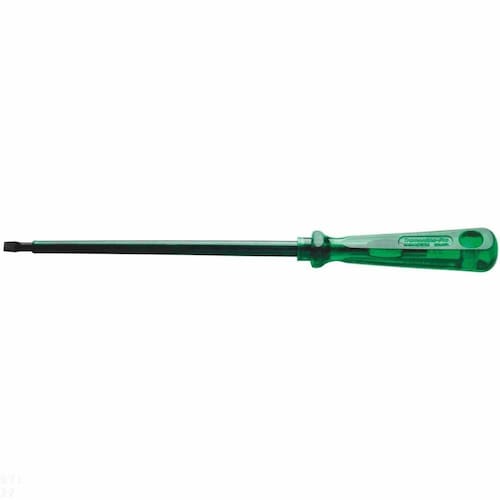 Seja em manutenções industriais ou automotivas, apertar ou afrouxar parafusos se torna mais fácil com a ajuda das Chaves Easygrip da Tramontina PRO. Seu cabo com formato sextavado proporciona maior conforto e agilidade na utilização. Estão disponíveis com ponta chata, cruzada, trafix, trafix PZ e canhão nos modelos tradicional, toco e com isolação. Escolha o tamanho ideal para o seu trabalho e mãos à obra. Orientações Haste em aço cromo vanádio temperada. Ponta fosfatizada.Cabo em PVC verde transparente.Isolação de 1000 V c. a.Produto em conformidade com a NBR9699 e NR10. DIN ISO 2380.As hastes das chaves de fenda são testadas em máquina de ensaio específica, para verificar o perfeito balanço entre resistência mecânica e dureza.Os dimensionais das pontas são verificados com gabaritos-padrão calibrados e certificados, e a qualidade do fosfato é inspecionada ao microscópio.As chaves de fenda isoladas são amplamente testadas, o que promove segurança na sua utilização em locais com tensões de até 1000 V c. a.Indicada para trabalhos em redes de tensão até 1.000 volts c. a.As ferramentas são produzidas e testadas conforme normas específicas. Características Gerais EAN13 7891114039825 DUN14 17891114039822 NCM 8205.40.00 Peso Líquido 0,1030 kg. Peso Bruto 0,1070 kg. Metragem 0,000199 m³. Dimensões Embalagem (Compr. X Larg. X Alt.) 265x 30x 25 mm. Dimensões Produto (Compr. X Larg. X Alt.) 259x 29x 29 mm. Cor 1 3C775F Hexa Dimensão Extra A 6,0 mm. Dimensão Extra B 259,0 mm. Dimensão Extra C 28,7 mm. Dimensão Extra D 150,0 mm. Dimensão Extra E 1,2 mm. Observações Use óculos, luvas e outros equipamentos de proteção individual (EPIs) de acordo com a tarefa a ser executada. Utilize chaves de fenda isoladas, identificadas pela marcação 1.000 V, quando for necessário trabalhar em locais com corrente elétrica. Importante: nestes casos, inspecione a integridade da isolação elétrica, e, se aparecerem trincas na isolação, suspenda o uso imediatamente. Utilize chaves com ponta adequada para cada tipo de fenda, para realizar a tarefa de forma mais rápida e segura. Respeite o torque estabelecido por norma para cada bitola. Não utilize as chaves de fenda como formão ou alavanca. Não altere as dimensões originais da ponta para obter outro perfil. Armazene em local limpo e seco.