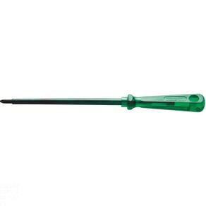 Seja em manutenções industriais ou automotivas, apertar ou afrouxar parafusos se torna mais fácil com a ajuda das Chaves Easygrip da Tramontina PRO. Seu cabo com formato sextavado proporciona maior conforto e agilidade na utilização. Estão disponíveis com ponta chata, cruzada, trafix, trafix PZ e canhão nos modelos tradicional, toco e com isolação. Escolha o tamanho ideal para o seu trabalho e mãos à obra. Orientações Haste em aço cromo vanádio temperada. Ponta fosfatizada.Cabo em PVC verde transparente.Isolação de 1000 V c. a.Produto em conformidade com a NBR9699 e NR10.DIN ISO 8764. As hastes das chaves de fenda são testadas em máquina de ensaio específica, para verificar o perfeito balanço entre resistência mecânica e dureza.Os dimensionais das pontas são verificados com gabaritos-padrão calibrados e certificados, e a qualidade do fosfato é inspecionada ao microscópio.As chaves de fenda isoladas são amplamente testadas, o que promove segurança na sua utilização em locais com tensões de até 1000 V c. a.Indicada para trabalhos em redes de tensão até 1.000 volts c. a.As ferramentas são produzidas e testadas conforme normas específicas. Características Gerais EAN13 7891114039863 DUN14 17891114039860 NCM 8205.40.00 Peso Líquido 0,0600 kg. Peso Bruto 0,0640 kg. Metragem 0,000118 m³. Dimensões Embalagem (Compr. X Larg. X Alt.) 205x 25x 23 mm. Dimensões Produto (Compr. X Larg. X Alt.) 199x 22x 22 mm. Cor 1 3C775F Hexa Dimensão Extra A 5,0 mm. Dimensão Extra B 199,0 mm. Dimensão Extra C 22,5 mm. Dimensão Extra D 100,0 mm. Dimensão Extra E 1,2 mm. Observações Sempre utilizar óculos de segurança para proteger os olhos.Utilizar luvas para proteger as mãos.Sempre utilizar chaves de fenda isoladas, identificadas pela marcação 1000 V, quando é necessário trabalhar em um local que tenha corrente elétrica.Utilizar chaves com ponta adequada para cada tipo de fenda, para conseguir realizar a tarefa mais rápido e de forma segura.Respeitar o torque estabelecido por norma para cada bitola.Não usar as chaves de fenda como formão ou alavanca.Não alterar as dimensões originais da ponta para obter outro perfil.
