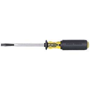 Klein Tools Chave de fenda 6026K com fenda, chave de cabeça chata de lâmina dividida de 5/40.6 cm, ação de aderência positiva, alça de amortecimento - Suporte de parafuso aberto: a chave de 5/40.6 cm é projetada para segurar mecanicamente parafusos para aplicações que requerem aço inoxidável - Fácil de usar: instale facilmente luminárias suspensas e trabalhe com parafusos não magnéticos - Adaptável: inicie e aperte os parafusos com facilidade, reduzindo a necessidade de várias ferramentas no trabalho - Conecte facilmente os parafusos: deslize o polegar para acionar sem esforço o recurso de fixação do parafuso - Alça de almofada: o design ergonômico da alça oferece maior conforto e torque máximo durante o uso - Função de retenção: a chave de fenda minimiza o risco de queda de parafusos no local de trabalho - Durável: este driver é projetado para enfrentar trabalhos difíceis com confiança