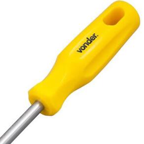 Produzida em aço cromo vanádio, proporcionando maior resistência e durabilidade. Possui acabamento niquelado que confere maior resistência contra oxidação/corrosão. Conta com ponta magnetizada que facilita tanto a colocação quanto a retirada de parafusos em locais de difícil acesso. Indicada para fixar e soltar parafusos com fenda simples.