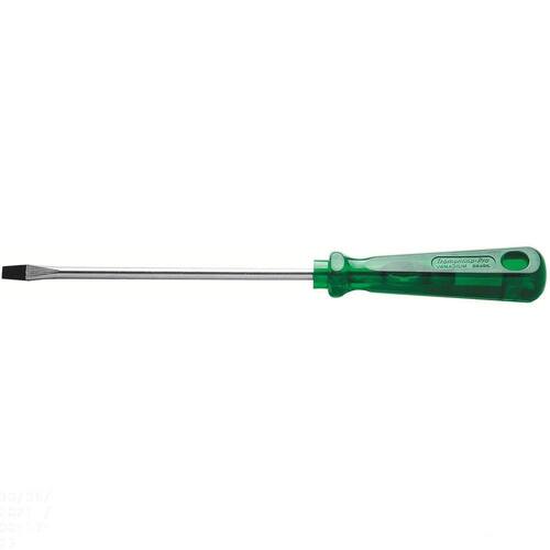 Seja em manutenções industriais ou automotivas, apertar ou afrouxar parafusos se torna mais fácil com a ajuda das Chaves Easygrip da Tramontina PRO. Seu cabo com formato sextavado proporciona maior conforto e agilidade na utilização. Estão disponíveis com ponta chata, cruzada, trafix, trafix PZ e canhão nos modelos tradicional, toco e com isolação. Escolha o tamanho ideal para o seu trabalho e mãos à obra. Orientações Haste em aço cromo vanádio temperada. Acabamento cromado.Ponta fosfatizada e magnetizada.Cabo em PVC verde transparente.DIN ISO 2380.Ponta chata.As hastes das chaves de fenda são testadas em máquina de ensaio específica, para verificar o perfeito balanço entre resistência mecânica e dureza.Os dimensionais das pontas são verificados com gabaritos-padrão calibrados e certificados, e a qualidade do fosfato é inspecionada ao microscópio.Apertar ou afrouxar parafusos de fenda simples.As ferramentas são produzidas e testadas conforme normas específicas. Características Gerais EAN13 7891114023046 DUN14 17891114023043 NCM 8205.40.00 Peso Líquido 0,0650 kg. Peso Bruto 0,0690 kg. Metragem 0,000147 m³. Dimensões Embalagem (Compr. X Larg. X Alt.) 255x 25x 23 mm. Dimensões Produto (Compr. X Larg. X Alt.) 249x 22x 22 mm. Cor 1 3C775F Hexa Dimensão Extra A 5,0 mm. Dimensão Extra B 249,0 mm. Dimensão Extra C 22,5 mm. Dimensão Extra D 150,0 mm. Dimensão Extra E 1,0 mm. Observações Sempre utilizar óculos de segurança para proteger os olhos.Utilizar luvas para proteger as mãos.Sempre utilizar chaves de fenda isoladas, identificadas pela marcação 1000V, quando é necessário trabalhar em um local que tenha corrente elétrica.Utilizar chaves com ponta adequada para cada tipo de fenda, para conseguir realizar a tarefa mais rápido e de forma segura.Respeitar o torque estabelecido por norma para cada bitola.Não usar as chaves de fenda como formão ou alavanca.Não alterar as dimensões originais da ponta para obter outro perfil.