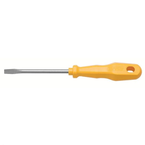 Ter um conjunto de ferramentas completo implica, também, em procurar peças ideais para você realizar até mesmo serviços mais básicos sem perda de tempo. E a Chave de Fenda Tramontina Yellow com Ponta Chata 1/4x4 Polegadas é exatamente assim! Resistente e firme devido a fabricação em aço especial temperado de sua haste, e com manuseio confortável graças ao cabo em polipropileno injetado, ela vai te ajudar nas tarefas a apertar e afrouxar parafusos de forma muito mais prática. A melhor escolha para completar sua caixa de ferramentas! Orientações Haste em aço especial temperado. Acabamento niquelado. Ponta chata. As hastes as chaves de fenda são testadas em máquinas de ensaio específicas, para verificar o perfeito balanço entre resistência mecânica e dureza. Cabos injetados com material de alta resistência. Os dimensionais das pontas são verificados com gabaritos-padrão, calibrados e certificados. As ferramentas são produzidas e testadas conforme normas específicas. Características Gerais EAN13 7891114010923 DUN14 17891114010920 NCM 8205.40.00 Peso Líquido 0,0550 kg. Peso Bruto 0,0550 kg. Metragem 0,000150 m³. Dimensões Embalagem (Compr. X Larg. X Alt.) 200x 30x 25 mm. Dimensões Produto (Compr. X Larg. X Alt.) 200x 28x 28 mm. Cor 1 FFD200 Hexa Dimensão Extra A 6,7 mm. Dimensão Extra B 200,0 mm. Dimensão Extra C 28,5 mm. Dimensão Extra D 100,0 mm. Dimensão Extra E 1,4 mm. Observações Use óculos, luvas e outros equipamentos de proteção de acordo com a tarefa a ser executada. Utilize chaves de fenda isoladas, identificadas pela marcação 1.000 V, quando for necessário trabalhar em locais com corrente elétrica. Importante: nestes casos, inspecione a integridade da isolação elétrica, e, se aparecerem trincas na isolação, suspenda o uso imediatamente. Utilize chaves com ponta adequada para cada tipo de fenda, para realizar a tarefa de forma mais rápida e segura. Respeite o torque estabelecido por norma para cada bitola. Não utilize as chaves de fenda como formão ou alavanca. Não altere as dimensões originais da ponta para obter outro perfil. Armazene em local limpo e seco.