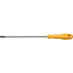 Se você calcular a quantidade de parafusos que teve que apertar ou afrouxar, seja em casa ou no trabalho, pode se surpreender. E para te ajudar nessa tarefa tão corriqueira e importante, trazemos a Chave de Fenda Tramontina Yellow com Ponta Chata 1/4x8 Polegadas! Uma ferramenta de alta precisão produzida em aço especial temperado, é altamente resistente e durável. Devido ao cabo em polipropileno injetado, seu manuseio se torna muito confortável e firme, garantindo eficácia na hora de apertar ou afrouxar parafusos. Uma ferramenta que não pode faltar em sua maleta! Orientações Haste em aço especial temperado. Acabamento niquelado. Ponta chata. As hastes as chaves de fenda são testadas em máquinas de ensaio específicas, para verificar o perfeito balanço entre resistência mecânica e dureza. Cabos injetados com material de alta resistência. Os dimensionais das pontas são verificados com gabaritos-padrão, calibrados e certificados. As ferramentas são produzidas e testadas conforme normas específicas. Características Gerais EAN13 7891114010954 DUN14 17891114010951 NCM 8205.40.00 Peso Líquido 0,0800 kg. Peso Bruto 0,0800 kg. Metragem 0,000229 m³. Dimensões Embalagem (Compr. X Larg. X Alt.) 305x 30x 25 mm. Dimensões Produto (Compr. X Larg. X Alt.) 300x 28x 28 mm. Cor 1 FFD200 Hexa Dimensão Extra A 6,7 mm. Dimensão Extra B 300,0 mm. Dimensão Extra C 28,5 mm. Dimensão Extra D 200,0 mm. Dimensão Extra E 1,4 mm. Observações Use óculos, luvas e outros equipamentos de proteção de acordo com a tarefa a ser executada. Utilize chaves de fenda isoladas, identificadas pela marcação 1.000 V, quando for necessário trabalhar em locais com corrente elétrica. Importante: nestes casos, inspecione a integridade da isolação elétrica, e, se aparecerem trincas na isolação, suspenda o uso imediatamente. Utilize chaves com ponta adequada para cada tipo de fenda, para realizar a tarefa de forma mais rápida e segura. Respeite o torque estabelecido por norma para cada bitola. Não utilize as chaves de fenda como formão ou alavanca. Não altere as dimensões originais da ponta para obter outro perfil. Armazene em local limpo e seco.