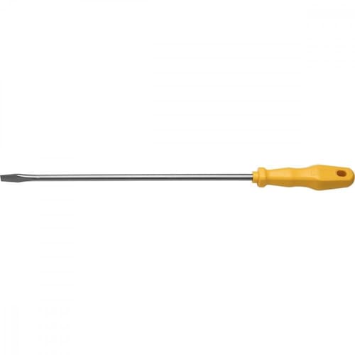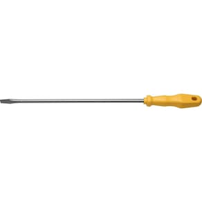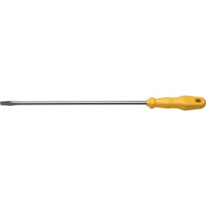 Haste em aço especial temperado. Acabamento niquelado. Ponta chata. As hastes as chaves de fenda são testadas em máquinas de ensaio específicas, para verificar o perfeito balanço entre resistência mecânica e dureza. Cabos injetados com material de alta resistência. Os dimensionais das pontas são verificados com gabaritos-padrão, calibrados e certificados. As ferramentas são produzidas e testadas conforme normas específicas. Para quem preza por ter uma boa chave de fenda, precisa conhecer a Chave de Fenda Tramontina Yellow com Ponta Chata 5/16x12 Polegadas. Uma ferramenta forjada em aço especial temperado, lhe garantindo muito mais durabilidade e resistência. O cabo produzido em polipropileno injetado, proporciona muito mais conforto no manuseio. Indispensável para apertar e afrouxar parafusos, vai levar ainda muito mais praticidade na execução das suas tarefas. Segurança e eficácia em uma única ferramenta!
