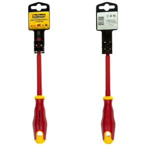 Descrição: - Atende norma internacional EN/IEC 60900:2004. - Cabo e haste isolados para 1.000 V. - Testada individualmente. - Com formato anatômico que proporciona melhor manuseio.