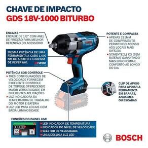 Chave de Impacto 18V Bosch GDS18V-1000SB - Potência Total