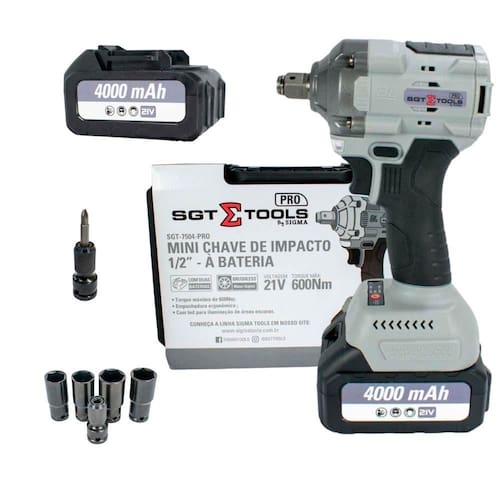 Chave de Impacto 21V 1/2" 600NM Mini com 2 Baterias Brushless SGT-7504 SIGMA