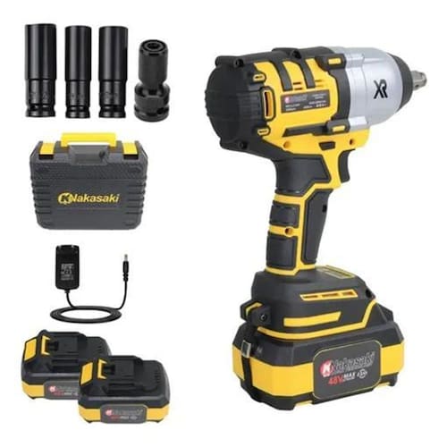 Chave de impacto nk8008 Chave de impacto a bateria 48v - potência e desempenho A chave de impacto a bateria 48v é a solução ideal para trabalhos pesados, oferecendo um torque máximo de 800 n.M, perfeito para apertar e soltar parafusos com extrema eficiência. Com um motor brushless sem escovas , garante maior durabilidade e desempenho superior, além de reduzir a necessidade de manutenção. A bateria de íons de lítio 48v proporciona uma excelente autonomia, com carregamento rápido para uso contínuo. Ideal para aplicações em manutenção automotiva, montagem de estruturas metálicas e fixação industrial. Seu design ergonômico com pegada emborrachada oferece conforto e firmeza, minimizando a fadiga durante o uso prolongado. Além disso, possui iluminação led integrada, facilitando o trabalho em ambientes com pouca visibilidade. O gatilho de velocidade variável permite controle preciso, ajustando a força conforme a necessidade da tarefa. Com uma estrutura robusta e resistente, esta chave de impacto é feita para durar, mesmo em ambientes exigentes. Acompanha uma maleta reforçada, ideal para transporte e armazenamento seguro. O encaixe 1/2 quadrado é compatível com uma ampla variedade de soquetes, aumentando a versatilidade. A tecnologia de impacto otimizada garante uma transmissão de força eficiente, reduzindo o esforço necessário. Com excelente custo-benefício, é a ferramenta ideal para profissionais que buscam potência, mobilidade e praticidade em uma única solução. Conteúdo da embalagem: 1 chave de impacto a bateria 48v 2 baterias 48v 4.0ah 1 carregador bivolt 3 soquetes de impacto 17mm, 19mm, 21mm 1 adaptador para bits 1 maleta de transporte Informações técnicas: Torque máximo: 800 n.M Motor brushless sem escovas Alimentação: bateria de íons de lítio 48v Encaixe do soquete: 1/2 quadrado Iluminação led embutida Gatilho com ajuste de velocidade variável Estrutura ergonômica e resistente do vendedor: 90 dias. Marca: Nakasaki