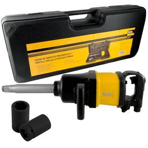 Chave de Impacto Pneumática 1 Pol. Longa 3.200 Nm Eda Profissional Chave de impacto é indicada para fixar e soltar parafusos e porcas, como também para montagem e manutenção, instalação de moldes para injeção, montagem e desmontagem de rodas de caminhões e máquinas, mecânica, etc. Utilizada em indústrias, oficinas, centros automotivos, metalúrgicas, entre outros. - Marca: Eda Profissional - Código: 0SP - Chave de Impacto com encaixe de 1 Polegada - Uso industrial e profissional - Velocidade livre: 3.200rpm - Torque máximo: 3.200 N.M 326 kgf.M - Pressão de trabalho 90 PSI - Consumo de ar: 13,4 CFM - Entrada de ar: 1/2 - Pescoço longo: 230mm - Inclui maleta e 2 soquetes 32 e 33 mm - Ideal para trabalho em borracharias, oficinas, caminhões, ônibus, tratores, etc - Gatilho para segurança do operador em ação suave que permite um menor controle de velocidade - Peso: 16.4kg - Dimensões da maleta: 65 x 28 x 17cm - Garantia: 90 dias Itens inclusos: - 1 Chave de Impacto Pneumática 1 Pol. 3.200nm - 1 Soquete de Impacto 32mm - 1 Soquete de Impacto 33mm - 1 Engate para mangueira de 1/2 Pol. - 1 Recipiente para óleo lubrificante - 1 Maleta