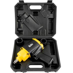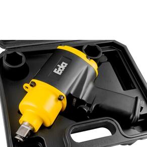Chave de Impacto Pneumática 3/4 Pol. 1.300nm Kit com Maleta Eda Profissional Chave de impacto é indicada para fixar e soltar parafusos e porcas de pneus em borracharias, oficinas e centros automotivos. sistema de impacto Twin Hammer martelo duplo , de alto torque. Em aço maraging de alta dureza. - Marca: Eda Profissional - Código: 0SM - Chave de Impacto com encaixe de 3/4 Polegada - Uso industrial e profissional - Fabricado em uma classe especial de aço baixo carbono de ultra alta resistência - O sistema de impacto é Twin Hammer martelo duplo , de alto torque de saída e excelente balanceamento - Velocidade livre: 3.200rpm - Torque máximo: 1.300 N.M 133 kgf.M - Com controle de torque - Pressão de trabalho 90 PSI - Consumo de ar: 7,8 CFM - Entrada de ar: 3/8 - Ideal para trabalho em borracharias e oficinas - Gatilho para segurança do operador em ação suave que permite um menor controle de velocidade - Peso da Chave Pneumática: 4.8kg - Peso bruto: 5,8Kg - Dimensões da embalagem: 32 x 27 x 10cm - Garantia: 90 dias Itens inclusos: - 1 Chave de Impacto Pneumática 3/4 Pol. - 1 Engate para mangueira de 3/8 Pol. - 1 Recipiente para óleo lubrificante - 2 Soquetes 32 e 33mm - 1 Maleta