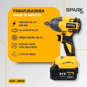 Se você procura potência, praticidade e versatilidade em uma única ferramenta, a Parafusadeira/Chave de Impacto Spark BR é a escolha ideal. Projetada para uso intenso e doméstico, ela combina desempenho e portabilidade, oferecendo mais eficiência em montagens, instalações, fixações e reparos em geral.