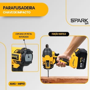 Se você procura potência, praticidade e versatilidade em uma única ferramenta, a Parafusadeira/Chave de Impacto Spark BR é a escolha ideal. Projetada para uso intenso e doméstico, ela combina desempenho e portabilidade, oferecendo mais eficiência em montagens, instalações, fixações e reparos em geral.