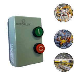 Chave de Partida Eletromagnética 9A - 380V Decorlux Chave de partida eletromagnética, ou partida direta, são dispositivos compostos de um contator AC3 e um relé térmico sobrecarga . Montados em caixa plástica e metálica com botoeiras de liga e desliga. Utilizados para manobras e proteção de motores monofásico e trifásico de diversos equipamentos e potência. Especificação Técnica: Marca: Decorlux Modelo: cp30901 Tensão: 380Vac Corrente: 9A Corrente de Ajuste: 1.0-1.6A Caixa: plástica Tensão nominal de isolação Ui : 690V Freqência nominal: 50/60Hz Grau de proteção: IP55 Acionamento: 2-botões Temperatura ambiente: -540ºC Altitude de instalação: