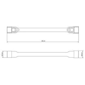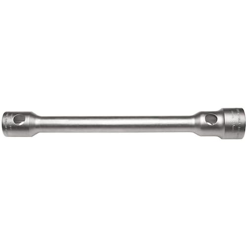 A Chave de Roda 27x32 mm Tramontina com Corpo Forjado em Aço Especial Cromado com Furo para Manípulo vai inserir maior agilidade e facilidade na rotina da sua oficina mecânica. Esse produto é a escolha perfeita para realizar a troca de pneus de caminhão com maior facilidade e eficiência, devido ao seu forjamento em aço especial cromado, que também vai inserir mais durabilidade. A escolha certa é com a Tramontina! Orientações Corpo forjado em aço especial e temperado.Acabamento cromado.Abertura das bocas calibradas.O teste de dureza é realizado em vários pontos para assegurar a resistência ao desgaste da chave durante o uso ininterrupto.As aberturas das bocas das chaves de aperto são verificadas com gabaritos calibrados, o que garante seu perfeito acoplamento nos parafusos.Alguns tipos de chaves de aperto são fornecidos em bitolas métricas e em polegadas, para o uso nos diversos fixadores disponíveis.As ferramentas são produzidas e testadas conforme normas específicas. Características Gerais EAN13 7891114045963 DUN14 17891114045960 NCM 8204.11.00 Peso Líquido 1,8200 kg. Peso Bruto 1,8700 kg. Metragem 0,001000 m³. Dimensões Embalagem (Compr. X Larg. X Alt.) 400x 50x 50 mm. Dimensões Produto (Compr. X Larg. X Alt.) 400x 48x 42 mm. Dimensão Extra A 42,0 mm. Dimensão Extra B 400,0 mm. Dimensão Extra C 48,0 mm. Observações Use óculos, luvas e outros equipamentos de proteção de acordo com a tarefa a ser executada. Não golpeie as chaves, a não ser que sejam projetadas para este fim. Sempre utilize uma chave de bitola correta para cada parafuso ou porca para que não haja folga, pois isso danifica a chave e o parafuso. Mantenha a chave limpa para um melhor agarre, pois usá-la suja com graxa ou óleo pode causar acidentes. Não use tubos ou extensões para obter mais torque. Não altere a forma original das chaves. Armazene em local limpo e seco.