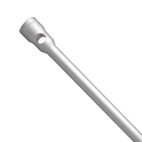 Forjada em aço cromo vanádio e temperada. Acabamento cromado. Lado 21 mm é quadrado. DIN 896. Após a fabricação, as chaves de roda são avaliadas nos quesitos torque e dureza, para atender aos requisitos da norma DIN 1711-1. Modelos e tamanhos dos mais variados para atender as muitas aplicações do setor de manutenção automotiva. As bocas das chaves de roda são verificadas com gabaritos calibrados, o que garante seu perfeito acoplamento nos parafusos. Própria para utilização em parafusos de rodas de caminhões, pois permite aplicação de grande esforço. As ferramentas são produzidas e testadas conforme normas específicas.
