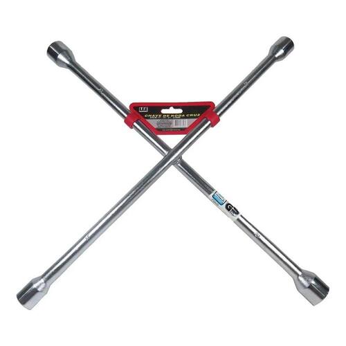 Chave de Roda do tipo Cruz 35 cm com 4 bocas - Selo GS TUV Rheiland de Qualidade Alemã reconhecido pelo INMETROMarca: LEETOOLSCaracterísticas:-Formato: Cruz.-Portátil.-Ótima qualidade e acabamento.-Útil para diversas funções.-Medidas das Bocas: 17, 19, 21 e 23 mm.-Comprimento de uma ponta a outra: 35 cm.Conteúdo:-1 Chave de Roda Cruz de 35 cm.Código: 689533 Marca: Lee Tools Club