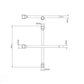 A Chave de Roda Tipo Cruz Tramontina com Corpo Forjado em Aço Especial Cromado 17x19x21 mm com Espátula é a ferramenta que não pode faltar no porta-malas do seu carro. Essa ferramenta produzida com corpo forjado em aço especial cromado vai lhe auxiliar a trocar pneus com muito mais facilidade, pois suas quatro extremidades acomodam uma grande variedade de tamanhos de porcas com olhal. Ela é altamente durável, resistente e ainda fácil de utilizar, sendo indispensável para você! Orientações Corpo forjado em aço especial e temperado.Acabamento cromado.Abertura das bocas calibradas.O teste de dureza é realizado em vários pontos para assegurar a resistência ao desgaste da chave durante o uso ininterrupto.As aberturas das bocas das chaves de aperto são verificadas com gabaritos calibrados, o que garante seu perfeito acoplamento nos parafusos.Alguns tipos de chaves de aperto são fornecidos em bitolas métricas e em polegadas, para o uso nos diversos fixadores disponíveis.As ferramentas são produzidas e testadas conforme normas específicas. Características Gerais EAN13 7891114015959 DUN14 17891114015956 NCM 8204.11.00 Peso Líquido 1,1300 kg. Peso Bruto 1,1300 kg. Metragem 0,003812 m³. Dimensões Embalagem (Compr. X Larg. X Alt.) 330x 330x 35 mm. Dimensões Produto (Compr. X Larg. X Alt.) 440x 29x 440 mm. Dimensão Extra A 27,2 mm. Dimensão Extra B 500,0 mm. Dimensão Extra C 29,2 mm. Dimensão Extra D 31,7 mm. Dimensão Extra E 16,0 mm. Dimensão Extra F 16,0 mm. Observações Use óculos, luvas e outros equipamentos de proteção de acordo com a tarefa a ser executada. Não golpeie as chaves, a não ser que sejam projetadas para este fim. Sempre utilize uma chave de bitola correta para cada parafuso ou porca para que não haja folga, pois isso danifica a chave e o parafuso. Mantenha a chave limpa para um melhor agarre, pois usá-la suja com graxa ou óleo pode causar acidentes. Não use tubos ou extensões para obter mais torque. Não altere a forma original das chaves. Armazene em local limpo e seco.