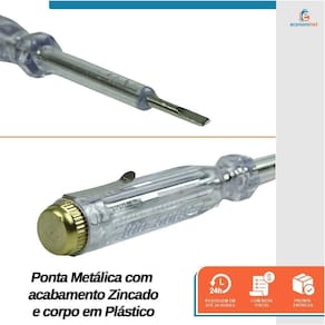 Características do produto: Material: Metal e Plástico Dimensões: 3mm de fenda x 140mm de comprimento haste e lâmina Voltagem: 100-500V Acabamento da lâmina: Zincado Peso: 24g Ref.: 3508951 Marca: Starfer Ean: 7891638066147