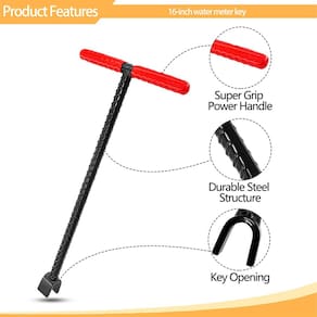 Chave de medidor de água de 16 polegadas com 4 vias Multifuncional de Serviços Públicos Key Contractor Grade Ferramenta de chave de fechamento para medidor de água principal -?Material da chave do medidor de água?:A chave do medidor de água é feita de aço pesado de nível comercial, que é muito resistente. A chave do tubo de água tem uma estrutura especial de aço resistente e de alto desempenho que não é fácil de quebrar. -?Tamanho da ferramenta de chave de fechamento da válvula?: 16 polegadas de comprimento, alça de 7,5 polegadas, abertura de chave de 3/4 polegadas. Esta ferramenta de desligamento da válvula de água tem um bom tamanho. Você pode colocar a chave do medidor de água em sua bolsa de ferramentas para uso conveniente em emergências. -?Uso da chave principal de água?: A chave principal de água pode facilmente abrir e fechar medidores de água, válvula de fechamento principal na beira da estrada, válvula desviadora de fossa séptica, válvula de esgoto, se encaixa na maioria das configurações. Esta ferramenta de chave de válvula de água vem com chave utilitária multifuncional de 4 vias para medidor de gás elétrico, armário, caixa, armário, chave de abertura. -?Design da chave do tubo de água?:A chave do medidor de água com alça elétrica super aderente em estilo T. A alça em T de aço reforçado é muito resistente e economiza mão de obra e pode proteger muito bem suas mãos. -?Pacote incluído?:Chave de medidor de água de 1* 16 polegadas e chave multifuncional de água de 1* 4 vias. Esteja você desligando rotineiramente a água da casa ou fazendo isso em uma emergência, essa ferramenta chave para medidores de água resolve o problema.