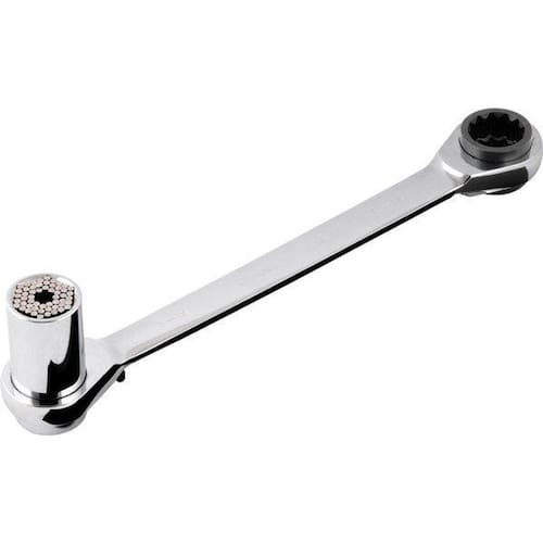 Indicada para apertar e soltar porcas e parafusos sextavados. Chave com soquete universal que se adapta a parafusos e porcas sextavadas com medidas entre 8 mm a 19 mm. Também possui uma chave estrela com catraca de 17 mm x 19 mm. ATENÇÃO, esta ferramenta é indicada para ajustes rápidos, e não para apertos finais e desapertos iniciais.