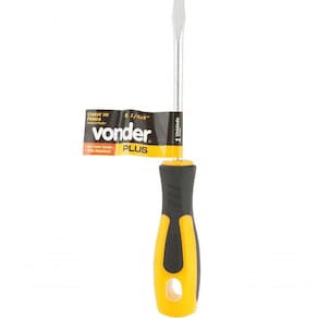 Chave Fenda 1/4\\'\\' X 4\\'\\' Cromo Vanadio - Vonder Plus Chave Fenda 1/4 X 4 Cromo Vanadio - Vonder Plus Indicada para fixar e soltar parafusos com fenda simples. Produzida em aço cromo vanádio, proporcionando maior resistência e durabilidade. Possui acabamento niquelado que oferece maior resistência contra oxidação/corrosão. Conta com ponta magnetizada que facilita tanto a colocação quanto a retirada de parafusos em locais de difícil acesso. Cabo anatômico em polipropileno revestido com borracha termoplástica que garante maior conforto ao operador.