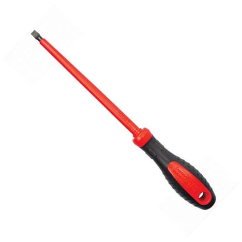 Haste em aço cromo vanádio temperada. Ponta fosfatizada. Cabo com dupla injeção. Isolação elétrica de 1.000 V c. A. Produto em conformidade com a IEC 60900 e NR 10. Ponta chata. Tamanho: 3x75mm. Indicadas para trabalhos em baixa tensão até 1.000V em corrente alternada e 1.500V em corrente contínua. ampla variedade variada de ferramentas para aplicação segura em áreas energizadas com tensões de trabalho de até 1.000V. Utilizada por profissionais que trabalham em áreas de risco redes energizadas e instalações industriais .