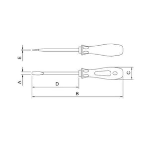 Chave fenda ponta chata aço cromo vanádio 6x250 mm 1/4x1... Tramontina - Prazer em fazer bonito Chave de fenda ponta chata em aço cromo vanádio 6x250 mm 1/4x10 Chaves de Fenda, Twister Seja em manutenções industriais ou automotivas, apertar ou afrouxar parafusos se torna mais fácil com a ajuda da Chave Twister da Tramontina PRO. Esta chave de fenda proporciona maior conforto e firmeza na utilização, devido a sua extremidade giratória e as saliências no cabo. Ideal para trabalhos em locais de difícil acesso, as chaves estão disponíveis em ponta chata e cruzada, nos modelos tradicional e toco. É mais uma inovação que compõe a linha de ferramentas industriais da Tramontina PRO. Agilidade e eficiência: características de quem é PRO. Composição qtde / código / produto . Haste em aço cromo vanádio temperada. Acabamento cromado. Ponta fosfatizada e magnetizada. Cabo injetado. Apoio giratório. DIN ISO 2380. Ponta chata. As hastes das chaves de fenda são testadas em máquina de ensaio específica, para verificar o perfeito balanço entre resistência mecânica e dureza. Os dimensionais das pontas são verificados com gabaritos-padrão calibrados e certificados, e a qualidade do fosfato é inspecionada ao microscópio. Apertar ou afrouxar parafusos de fenda simples. As ferramentas são produzidas e testadas conforme normas específicas. Tamanho: 6x250 mm 1/4x10 EAN13: 7891114069723 DUN14: 17891114069720 NCM: 8205.40.00 Peso Líquido: 0,1200 kg. Peso Bruto: 0,1200 kg. Metragem: 0,000760 m3. Dimensões Produto Compr. X Larg. X Alt. : 359x 30x 30 mm. Cor 1: EF8134 Hexa Dimensão Extra A: 6,5 mm. Dimensão Extra B: 359,0 mm. Dimensão Extra C: 30,0 mm. Dimensão Extra D: 250,0 mm. Dimensão Extra E: 1,2 mm. . . Marca: Não Informado
