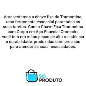Em suma, a chave fixa da Tramontina é sinônimo de qualidade, resistência e precisão. Adquirir esse jogo de chaves é investir em praticidade e eficiência para suas tarefas diárias. Não há como errar com a Tramontina, uma marca que há décadas está presente no mercado, proporcionando soluções confiáveis para profissionais e entusiastas do universo das ferramentas.