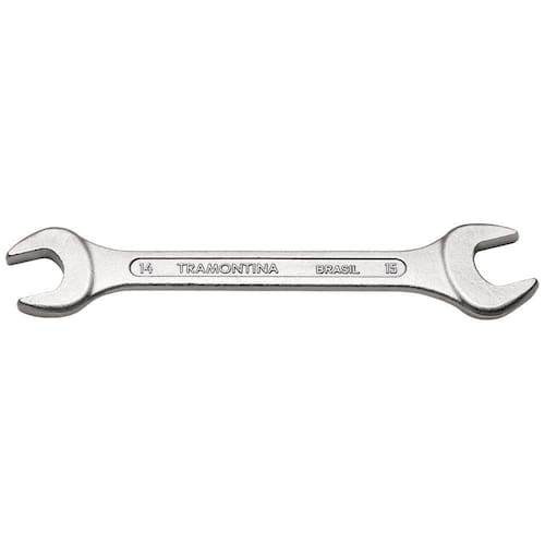 Corpo forjado em aço especial e temperado.Acabamento cromado.Abertura das bocas calibradas.O teste de dureza é realizado em vários pontos para assegurar a resistência ao desgaste da chave durante o uso ininterrupto. As aberturas das bocas das chaves de aperto são verificadas com gabaritos calibrados, o que garante seu perfeito acoplamento nos parafusos.Alguns tipos de chaves de aperto são fornecidos em bitolas métricas e em polegadas, para o uso nos diversos fixadores disponíveis.As ferramentas são produzidas e testadas conforme normas específicas. Tenha em sua caixa de ferramentas a Chave Fixa 14x15 mm Tramontina Basic com Corpo em Aço Especial Cromado. Uma ferramenta resistente, é produzida em aço especial temperado com acabamento cromado e possui bocas calibradas, que garantem muito mais precisão na hora de apertar ou afrouxar parafusos e porcas com perfil quadrado ou sextavado. Com a Tramontina, você tem ferramentas de alta qualidade e durabilidade!