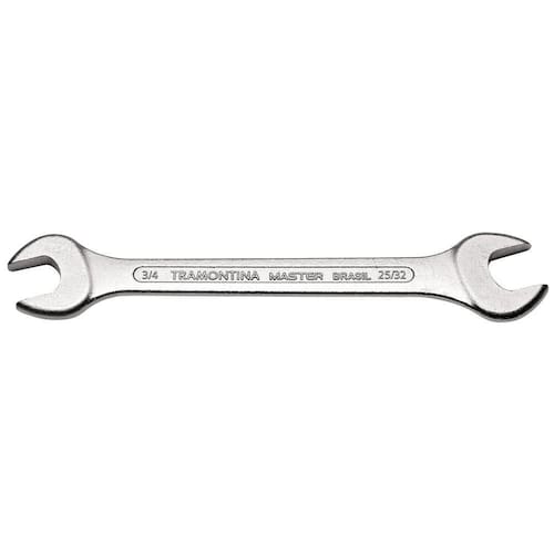 Para que você tenha mais facilidade na hora de remover ou colocar parafusos, utilize a Chave fixa 3/4x25/32 Tramontina com Corpo em Aço Especial Cromado. Com esta chave você aperta ou afrouxa com maior praticidade e eficiência. Muito mais qualidade nas suas atividades é com a Tramontina! Orientações Corpo forjado em aço especial e temperado.Acabamento cromado.Abertura das bocas calibradas.O teste de dureza é realizado em vários pontos para assegurar a resistência ao desgaste da chave durante o uso ininterrupto. As aberturas das bocas das chaves de aperto são verificadas com gabaritos calibrados, o que garante seu perfeito acoplamento nos parafusos.Alguns tipos de chaves de aperto são fornecidos em bitolas métricas e em polegadas, para o uso nos diversos fixadores disponíveis.As ferramentas são produzidas e testadas conforme normas específicas. Observações Use óculos, luvas e outros equipamentos de proteção de acordo com a tarefa a ser executada. Não golpeie as chaves, a não ser que sejam projetadas para este fim. Sempre utilize uma chave de bitola correta para cada parafuso ou porca para que não haja folga, pois isso danifica a chave e o parafuso. Mantenha a chave limpa para um melhor agarre, pois usá-la suja com graxa ou óleo pode causar acidentes. Não use tubos ou extensões para obter mais torque. Não altere a forma original das chaves. Armazene em local limpo e seco. Características Gerais EAN13 7891114008944 DUN14 17891114008941 NCM 8204.11.00 Peso Líquido 0,1500 kg. Peso Bruto 0,1500 kg. Metragem 0,000260 m³. Dimensões Embalagem (Compr. X Larg. X Alt.) 260x 50x 20 mm. Dimensões Produto (Compr. X Larg. X Alt.) 210x 43x 7 mm. Dimensão Extra A 7,5 mm. Dimensão Extra B 210,0 mm. Dimensão Extra C 43,0 mm.