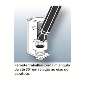 Use óculos, luvas e outros equipamentos de proteção individual (EPIs) de acordo com a tarefa a ser executada. Utilize o tamanho certo da chave para cada bitola de parafuso. Não faça aproximações de dimensionais, polegadas para milímetros, por exemplo. Não use tubos ou extensões para obter mais torque. Não golpeie as chaves. Não modifique o braço de alavanca da chave usando tubos ou barras extensoras. Armazene em local limpo e seco.