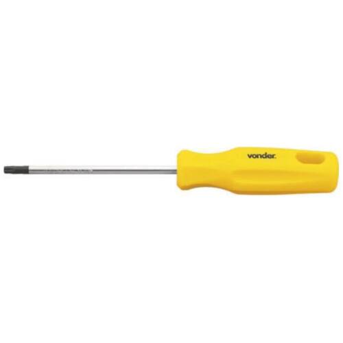 Chave hexalobular reta T25 com cabo VONDER Destaques e diferenciais: Produzida em aço cromo vanádio, proporcionando maior resistência e durabilidade. Possui acabamento cromado fosco que oferece maior proteção contra a oxidação/corrosão. Ponta magnetizada que facilita tanto a colocação quanto a retirada de parafusos em locais de difícil acesso. Cabo anatômico em polipropileno que oferece maior conforto no manuseio. Aplicações e dicas de uso: Indicada para apertar e soltar parafusos hexalobular Características Técnicas: Medida da chave hexalobular: T25 - 4,43 mm | Material da haste da chave: Aço cromo vanádio | Acabamento da haste da chave: Cromado fosco | Material do cabo da chave: Polipropileno Ean: 7893946134952