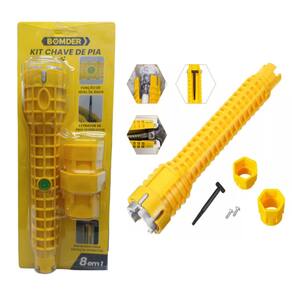 Chave Hidráulica Multifuncional 8 em 1 é a ferramenta perfeita para quem precisa de uma solução completa para instalações e reparos hidráulicos, tais como: pias, tubos, vasos, torneiras, válvulas, caixas acopladas, registros, chuveiros, aquecedores, etc. Com ela, você pode realizar diferentes tipos de reparos e instalações impecáveis em segundos de forma prática e rápida.