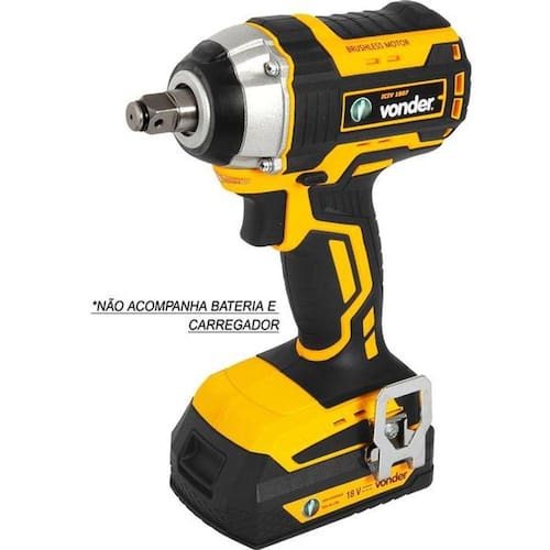 Este equipamento utiliza um modelo de bateria que pode ser intercambiável (não acompanha), ou seja, uma bateria que é compatível com outros modelos de ferramentas a bateria VONDER. Por isso, em sua próxima compra de ferramenta a bateria VONDER, procure um modelo que comece com a referência ?I?, ou que esteja identificado com o selo ?Bateria Intercambiável VONDER?. Desta forma, você garante modelos mais econômicos, sem a necessidade de aquisição de novas baterias e carregadores para uso em seu equipamento. Possui LED para melhorar a visibilidade do local de trabalho, cabo com revestimento emborrachado proporcionando maior conforto no manuseio e motor tipo Brushless (sem escova), que garante maior durabilidade