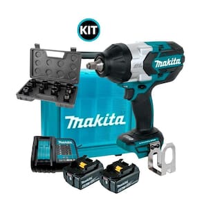 Chave de impacto 1/2 bateria 18v lxt makita dtw1002z + kit 2 baterias 6ah e carregador bivolt + jogo de soquete 10 peças