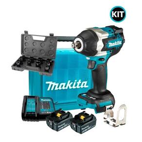 Chave de impacto 1/2 bateria 18v lxt makita dtw700z + kit 2 baterias 6ah e carregador bivolt + jogo de soquete 10 peças