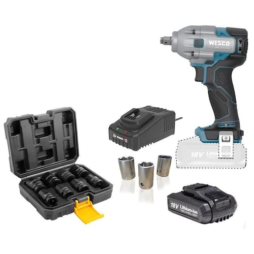 Chave impacto 18v wesco ws2407 brush + jogo soquetes 8 pçs