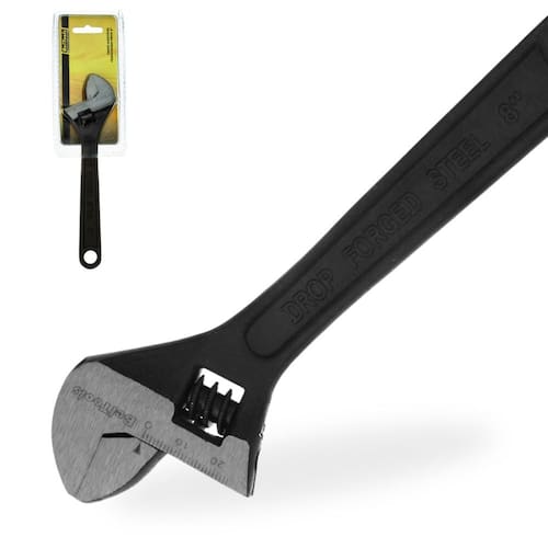 Indicação: Indicada para fixar ou soltar porcas e parafusos sextavados. Conhecida também como chave inglesa. Comprimento: 8" - 203mm. Capacidada de abertura: 23mm. Material do corpo: Aço carbono. Acabamento: Fosfatizado preto.