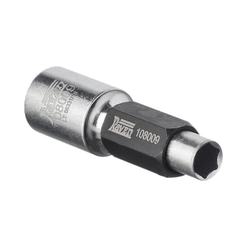 Chave para polia do alternador - raven Conjunto com soquete longo de 10mm com encaixe de 1/2 e adaptador sextavado. Utilizados em polias de alternador do tipo roda livre catracadas que possuem sextavado interno de 17 mm.