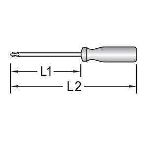 - Chave com haste redonda e resistente, com perfil de encaixe para parafusos tipo fenda cruzada "Phillips".