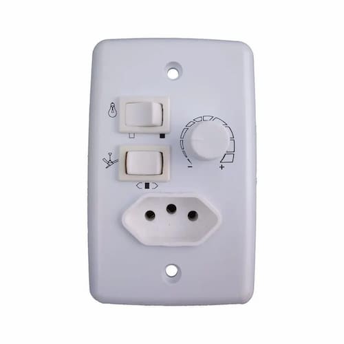 Equipamentos compatíveis: Ventiladores de teto Sem capacitor Chave Bivolt com controle rotativo de velocidade e acionamento de lâmpada . Funcionalidades: -Velocidades do ventilador ajustáveis: Controle rotativo, ajuste a velocidade com precisão para sua necessidade -Reverse - Exaustão e Ventilação -Acionamento da lâmpada -Tomada Bivolt Marca: Rima/Trio