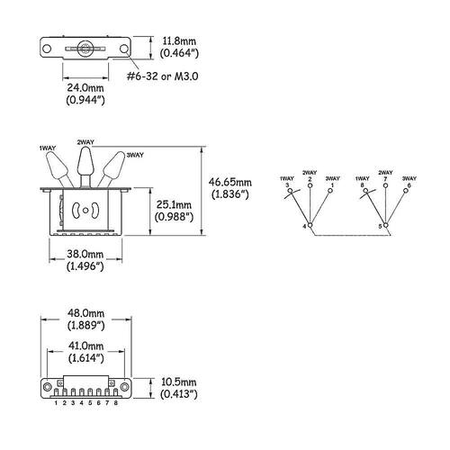 Chave Seletora de 3 posições para instrumentos, modelo Telecaster, tipo PCB de toque, acabamento cromado com knob branco, parafusos inclusos, Spirit Guitar Parts - CST3-NON #6-32-CR/WH.
