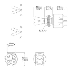 Chave Seletora Mini de 2 posições para instrumentos, tipo toogle, acabamento dourado, 3 polos e 2 vias ON-ON, com rosca M6.0-0.75P, Spirit Guitar Parts - M105-GD.